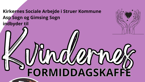 Velkommen til ‘Kvindernes Formiddagskaffe’. Vi mødes på skift i Asp Kirkehus og Gimsing Kirkehus. Alle kvinder er velkomne. Vi vil sammen skabe gode formiddage med god og hyggelig stemning.